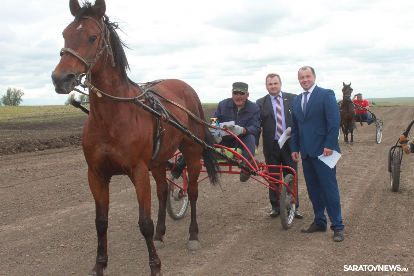 Завершился праздник, посвящённый Дню Россию, зрелищными бегами и скачками на ипподроме хозяйства Владимира Целых. Вот уже пятый год Владимир Васильевич формирует маточное поголовье из лошадей рысистых пород, перенимая опыт у коллег — руководителей сельхозпредприятий Андрея ЗИБАРЕВА, Юрия УРАБАСОВА, Андрея УСТИНОВА и других коневладельцев. К сегодняшнему празднику рядом с базой хозяйства была построена беговая дорожка длиной 1600 метров. Болельщиков собралось не менее тысячи, а призовому фонду, учредителем которого стал Владимир Целых, могли бы позавидовать многие, кто участвует со своими лошадьми в бегах на Саратовском ипподроме.