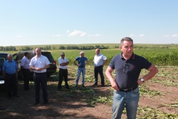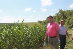 Первая остановка — поле кукурузы. Посевы чистые, по высоте — человека не видно в зарослях. Здесь земля не пашется уже четыре года. Зерновой гибрид кукурузы сеяли по подсолнечнику. Главный агроном хозяйства Алексей ЗОЛОТУХИН рассказывал, сколько и какие гербициды были внесены по весне, когда проведена листовая подкормка. В этом хозяйстве умеют дружить с наукой и со знанием дела экспериментировать.