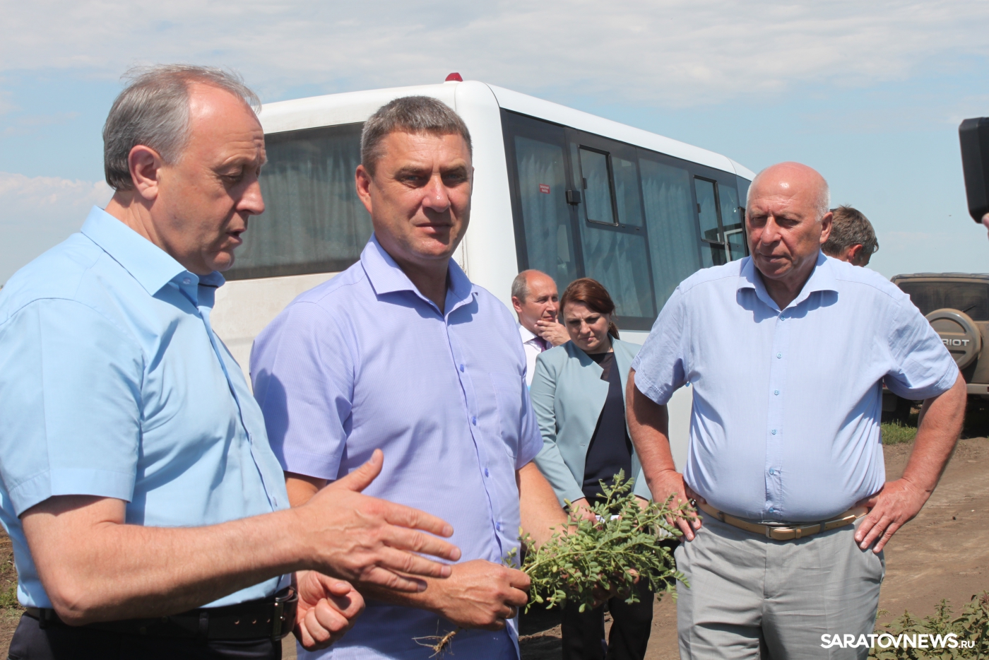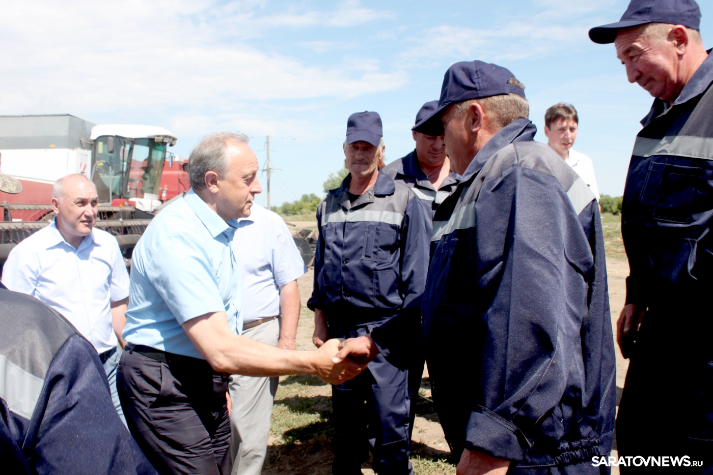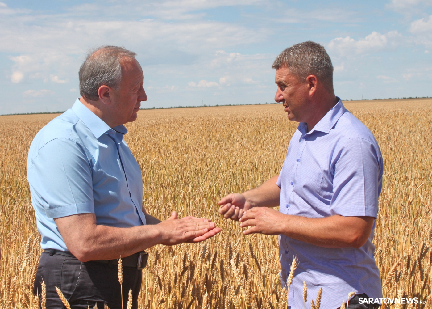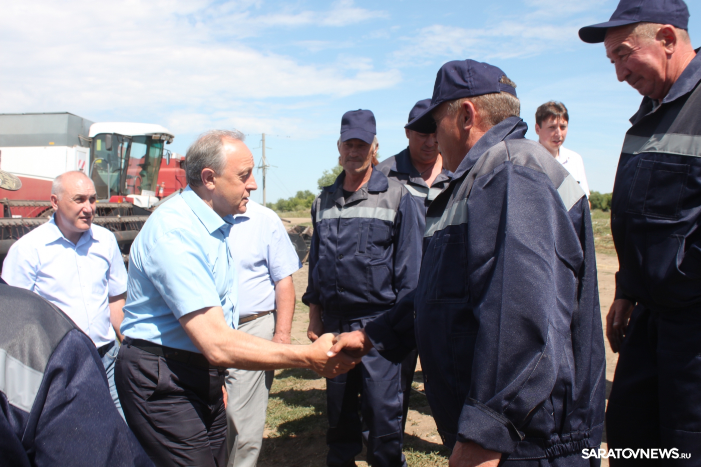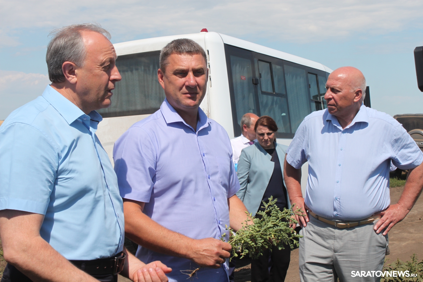 Накануне врио губернатора Валерий РАДАЕВ побывал в одном из хозяйств Перелюбского района — КФХ Юрия ЮШИНА, где вместе с фермером, а также министром сельского хозяйства области Татьяной КРАВЦЕВОЙ, председателем комитета по аграрным вопросам областной думы Николаем КУЗНЕЦОВЫМ, главой администрации Перелюбского района Геннадием МОТИНЫМ осмотрел посевы озимой пшеницы перед уборкой, оценил потенциал посевов нута, пообщался с коллективом механизаторов и отметил высокий уровень подготовки хозяйства к началу уборочных работ.