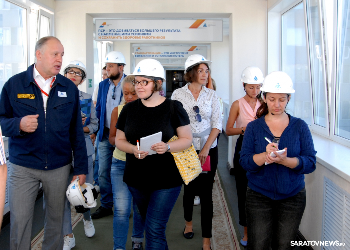 Сергей Владимирович подробно рассказал о том, как устроен ядерный реактор и как происходит выработка электроэнергии. От первого энергоблока отходят пять линий электропередачи, по ним электричество поступает в энергосистему Саратовской области. Второй, третий и четвёртый энергоблоки в основном работают на Единую энергосистему России: шесть линий электропередачи надёжно снабжают электричеством потребителей Волгоградской, Самарской, Пензенской и других областей. По словам специалиста, все четыре энергоблока переведены на 18-месячный топливный цикл и работают на уровне тепловой мощности 104% от номинальной. Раньше ядерное топливо требовалось перезагружать каждые 12 месяцев в ходе планового ремонта. Теперь энергоблоки могут работать без остановки по полтора года. Контроль всех параметров работы реактора и другого энергооборудования осуществляется при помощи блочного щита управления. Для исключения малейшего отклонения показателей от штатных предназначена автоматическая защита. На станции внедрено несколько независимых друг от друга систем безопасности. Представители СМИ увидели также резервные дизельные электростанции, гарантирующие безаварийную работу АЭС, и автономные передвижные источники тока, которыми обеспечены все энергоблоки. Безопасная и надёжная работа АЭС — главный приоритет в деятельности предприятия.