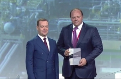 Председатель Правительства РФ Дмитрий Медведев вручил генеральному директору ПАО «ФосАгро» Андрею Гурьеву награду за победу в конкурсе «Премия развития - 2019» в номинации «Лучший экспортный проект». Торжественная церемония награждения победителей состоялась в рамках Российского инвестиционного форума «Сочи - 2019».