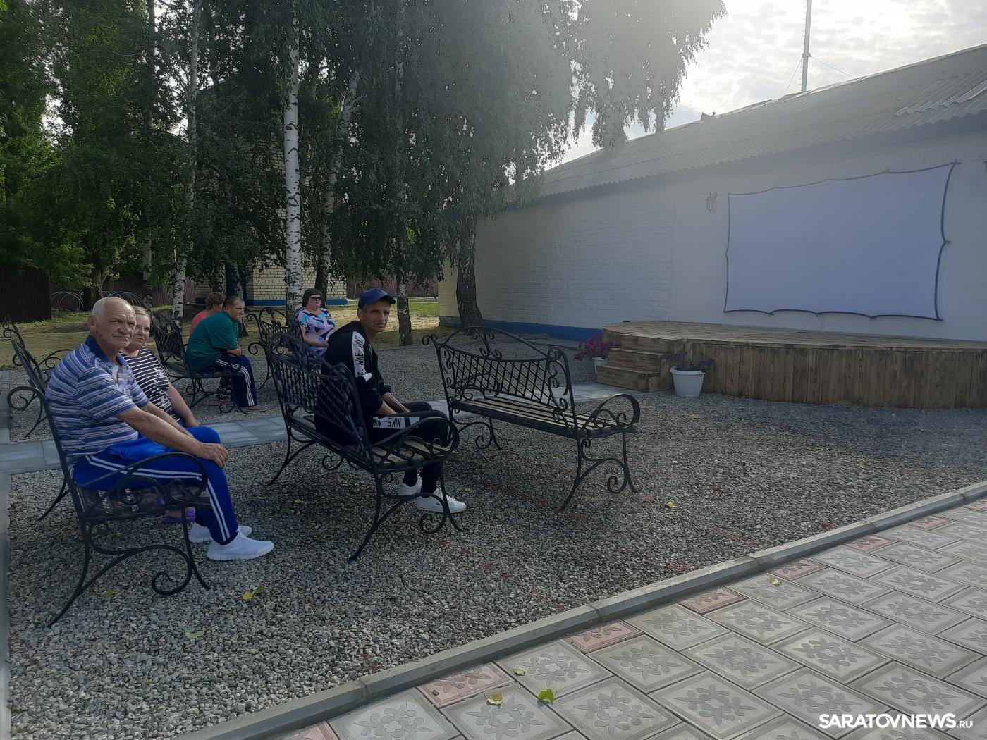 Сразу на берегу обустроен открытый летний кинотеатр. Здесь на эстраде показывают кинофильмы, в основном советского времени, проживающие их очень любят, говорят, что они сделаны с душой и с талантом. Территория вокруг эстрады выложена красивой плиткой, установлены лавки и скамейки для телезрителей. По словам директора Трофимова, всю эту красоту создали в рекордно короткий срок — всего за две недели. Афиши перед показом кинофильмов будет рисовать Сергей Соколов — талантливый и самобытный художник, проживающий в доме-интернате.