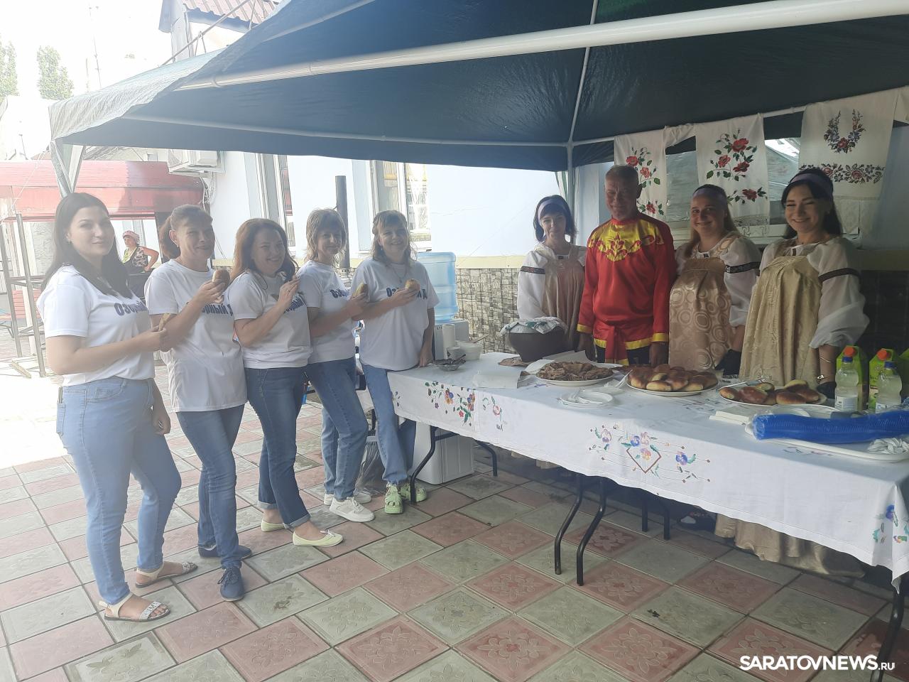 Ну и самое главное — все, кто приехал в дом-интернат в этот незабываемый день, смогли насладиться настоящей русской кухней. Здесь хозяйничали сотрудницы учреждения, одетые в русские национальные костюмы: яркие сарафаны и кокошники, превратившие их в красавиц из русских сказок. Они наливали гостям чай из настоящего самовара, гревшегося на дровах, угощали невероятно вкусной выпечкой — пирожками с мясом и с яблоками, накладывали в тарелки кашу туриста — пшённую с тыквой. За кухней наблюдал и руководил приготовлением обеда постоянный гость дома-интерната в Озёрном, шеф-повар одного из самых известных ресторанов северной столицы России — Санкт-Петербурга, Андрей Литвиненко. Уроженец Саратова, он уже в третий раз с начала года приезжает в Озёрное, где ему всё очень нравится — и само учреждение, и прекрасная природа вокруг, и, главное, замечательные люди, посвятившие свою жизнь заботе о проживающих здесь, о тех, кто нуждается в их помощи.