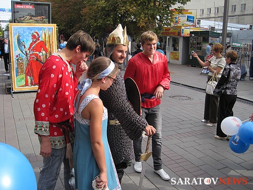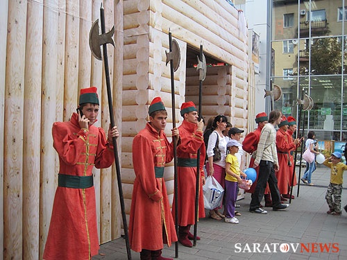 Весь проспект условно разделили на три исторические зоны. От улицы Чапаева до улицы Вольской - историческая зона основания Саратова. Здесь установили театрализованную заставу, горожан встречали стрельцы и исторические персонажи.