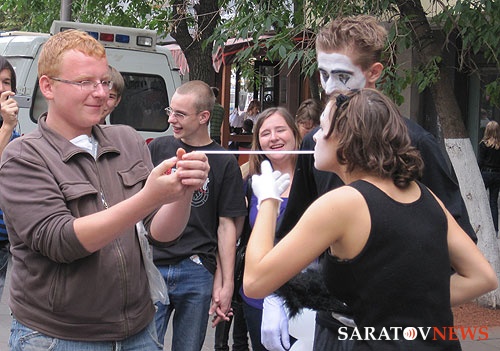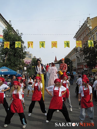 И третья зона от улицы Горького до улицы Радищева – карнавальная. Саратовцев развлекали цирковые и театральные артисты: клоуны, пантомимы, люди на ходулях.