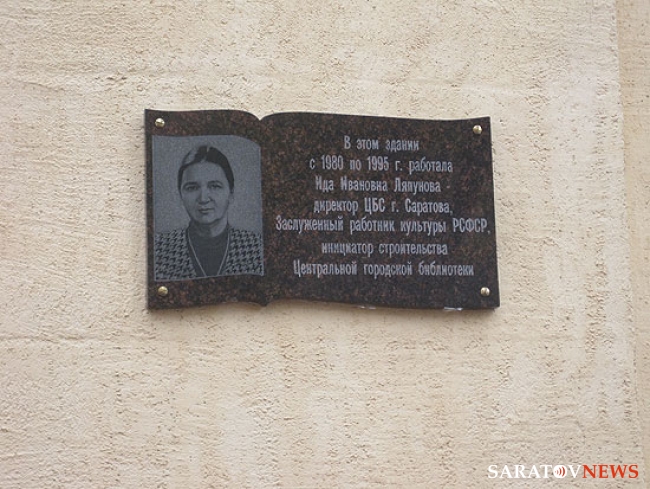 Сегодня в Кировском районе Саратова открыли мемориальную доску памяти первого директора Централизованной библиотечной системы Саратова Иды Ляпуновой.