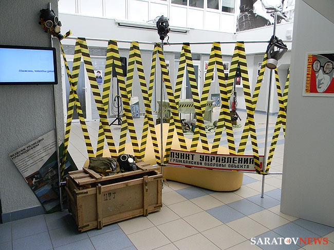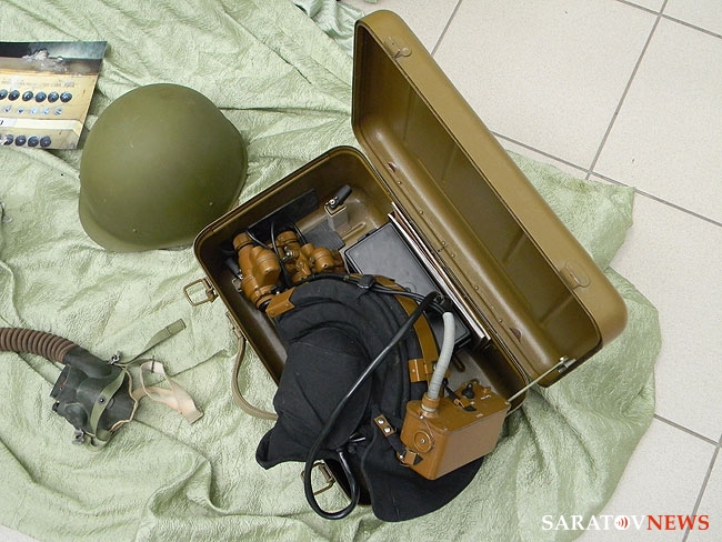 Не обошлось без креатива - один из противогазов, встречающий посетителей при входе на выставочную площадку, в прямом смысле, расписан под хохлому. Хотя и без этого здесь достаточно уникальных вещей: радиостанция "Актиния" в защитном контейнере из пенопласта, с высокой антенной, она настроена на одну международную частоту, которая передает сигнал SOS; противогаз КИП-5 – это кислородный изолирующий противогаз, с кислородным баллоном, весь цикл дыхания которого идет внутри, и в атмосферу ничего не выходит. В нем можно даже нырять. Есть полевой телефонный аппарат – ТАИ-43, не связанный с электросетью.