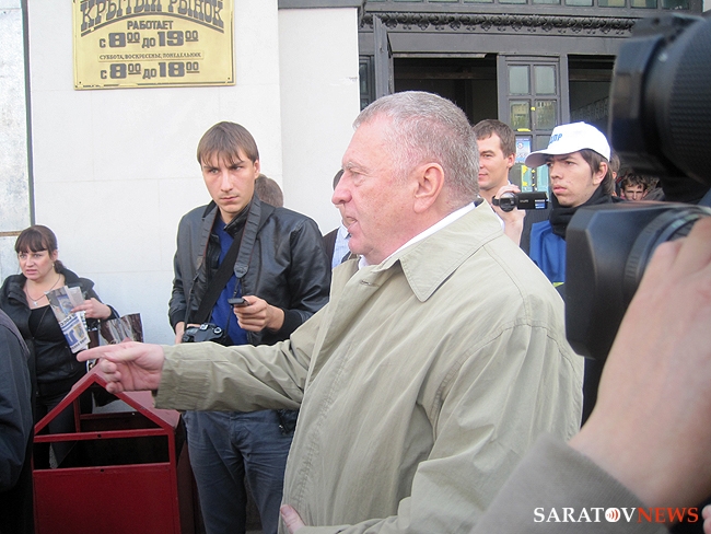 Уже выйдя за пределы рынка лидер "ЛДПР" в очередной раз призвал граждан идти на выборы и голосовать за его партию, после чего, немного поругав чиновников, сел в автомобиль с тонированными стеклами и выехал, как рассказали Saratovnews присутствующие на месте сотрудники пресс-службы партии, в аэропорт.