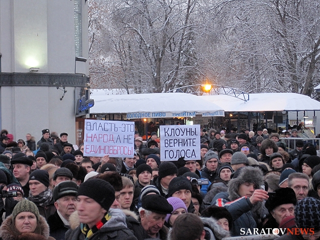 Saratovnews представляет фото- и ведеоверсии митинга оппозиционных сил, прошедшего 24 декабря. По разным оценкам, на акцию протеста на площадь Кирова в Саратове пришло более 1000 человек.
