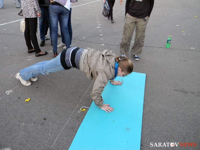 Кроме того, горожане увидели спортивные и скаутские игры, выступления атлетов клуба "Железный Самсон", русские народные игры, забавы, уличную акробатику, танцы, выступления народной артистки России Елены Сапоговой и студентов фольклорных групп Саратовской консерватории.