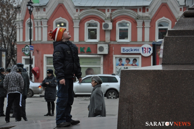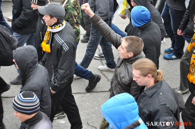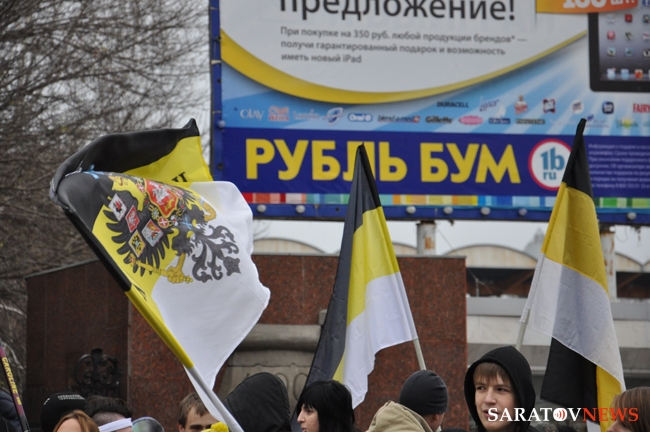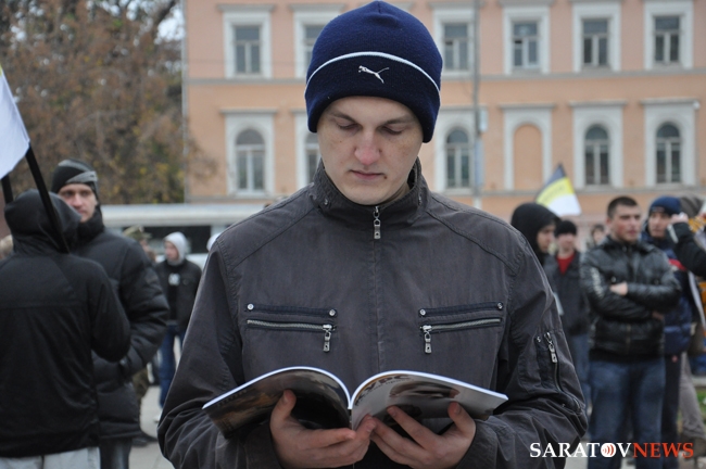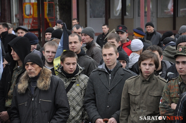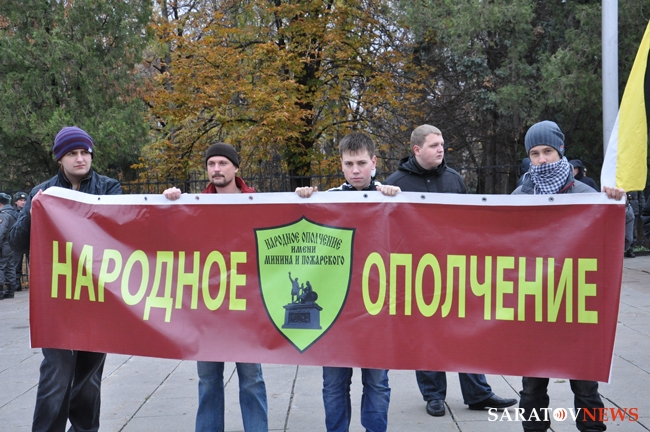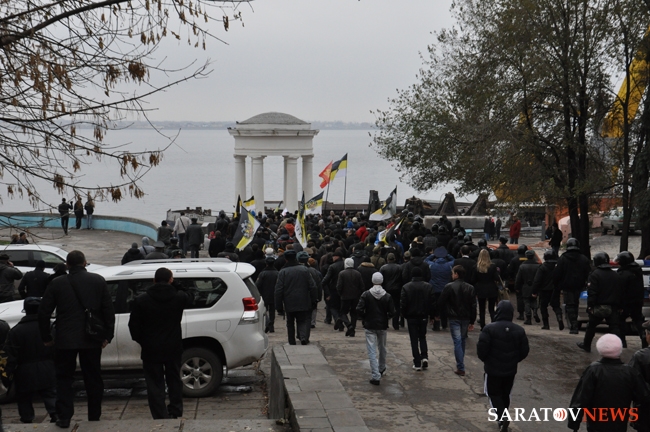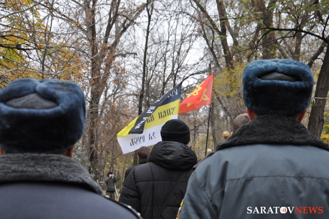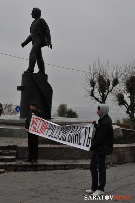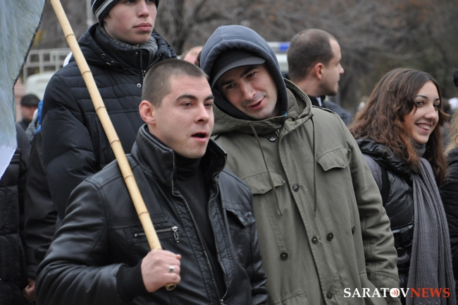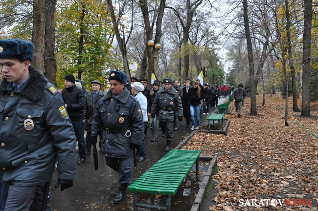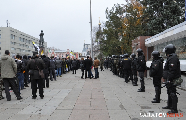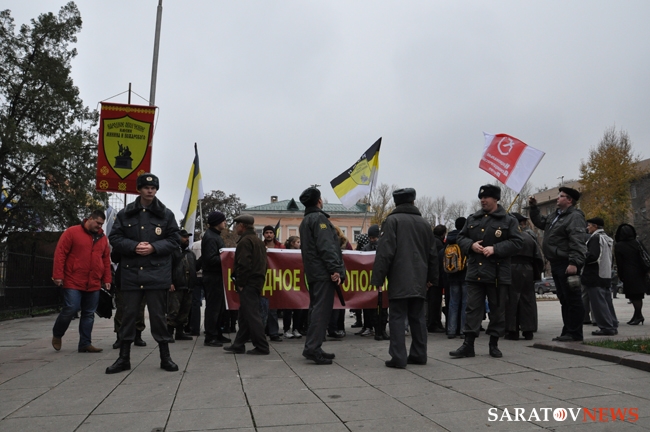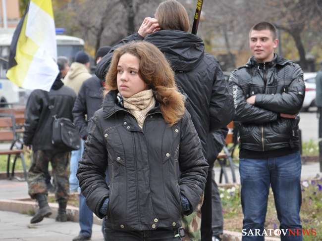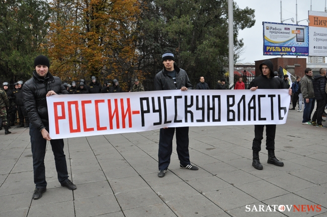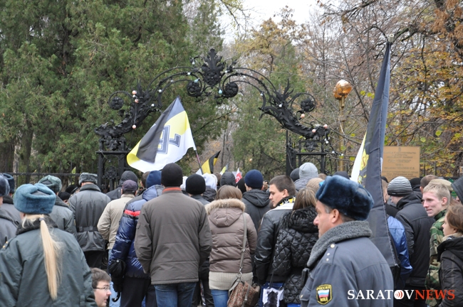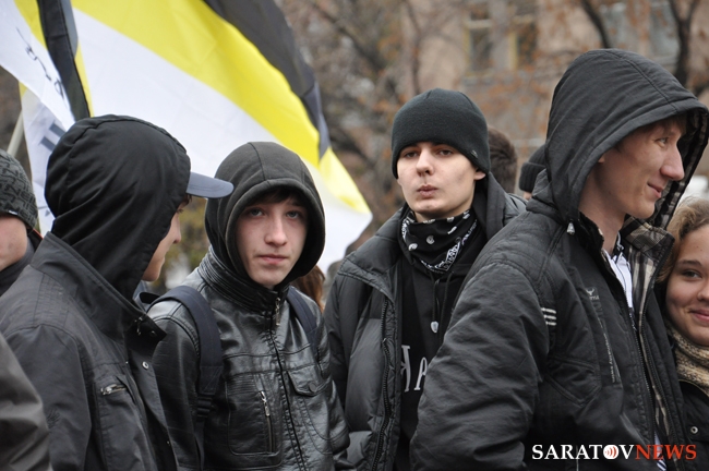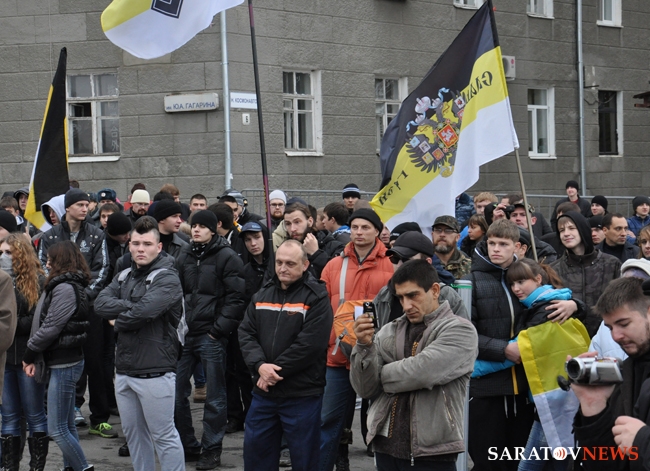 В воскресенье, 4 ноября, в День согласия и примирения состоялся "русский марш". По центру Саратова прошли участники местных националистических движений. Действо началось в 14.00 у памятника Чернышевскому: националисты промаршировали по Липкам, перекрытому Бабушкиному взвозу и нижнему ярусу Набережной к памятнику Гагарину. Обеспечением безопасности марша для участников и прохожих занималась полиция и ОМОН. Перед началом движения участников марша попросили снять маски, а в пути колонну митингующих сопровождала едва ли не превышающая по численности колонна правоохранителей. По пути националисты скандировали лозунги "Россия для русских, Саратов для славян", "Пока мы едины, мы непобедимы", "Один за всех и все за одного", "России – русскую власть", "Мы здесь Русь", "Русские, вперед", "Вперед, Россия, мы с тобой", "Слава предкам, слава роду, слава русскому народу". Немногочисленные автолюбители, для которых перекрыли проезжие части некоторых улиц на время марша, не выказывали ни раздражения, ни одобрения. На получасовом митинге у памятника Гагарину собравшиеся высказали свои претензии к существующей власти. А один молодой националист прочитал стихи собственного сочинения. Акция прошла без эксцессов.