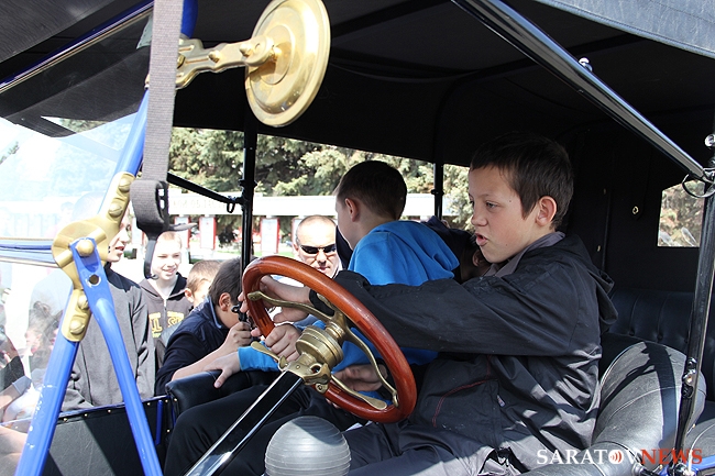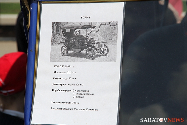 Присутствующие дети и взрослые, пользуясь моментом, с интересом рассматривали ретро-автомобили, трогали, а более смелые даже садились за руль покрутить баранку. У одного из автомобилей, "Ford T" 1907 года выпуска, принадлежащего облдепу Василию Синичкину, собралось наибольшее количество народа. Правда, для передвижения машины применяли эвакуатор.