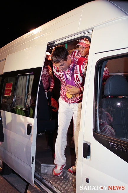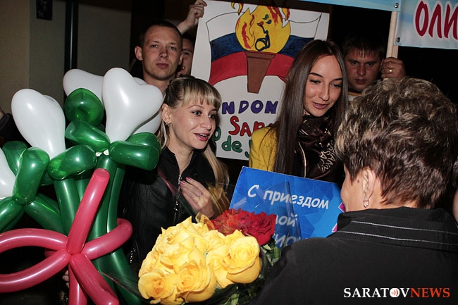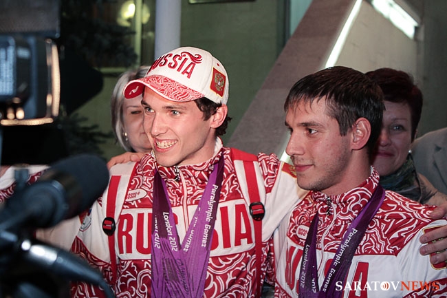 Саратовские чемпионы и призеры Паралимпийских игр в Лондоне вернулись в родной город. Вчера вечером около 22:15 в аэропорту их встречали многочисленные родственники, друзья и журналисты. Вооруженные букетами и флагами родные и близкие скандировали лозунги, несли трех метровые транспаранты и всяческим образом выражали свою радость успехам наших спортсменов.