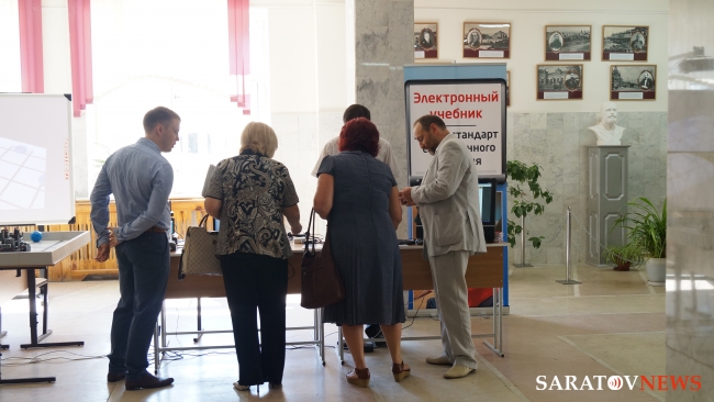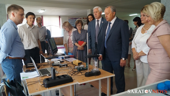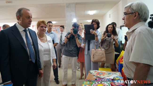Сегодня, 20 августа, перед началом областного совещания "Актуальные направления развития системы образования Саратовской области: задачи на 2014-2015 учебный год" в энгельсской школе №33, губернатор Саратовской области Валерий Радаев осмотрел выставку новых образовательных технологий.