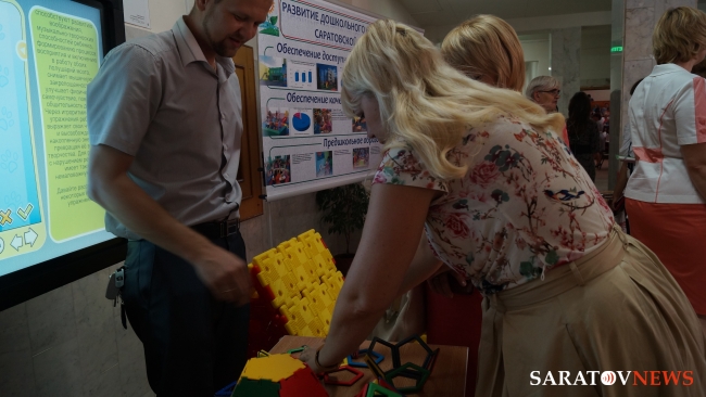 Увидев яркие красивые развивающие игрушки, предназначение для детей дошкольного возраста, Радаев поинтересовался у министра Епифановой: "А новые построенные детские сады закупают эти вещи?". Марина Анатольевна ответила утвердительно.
