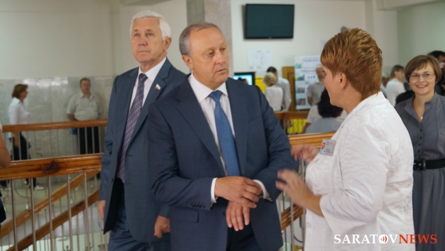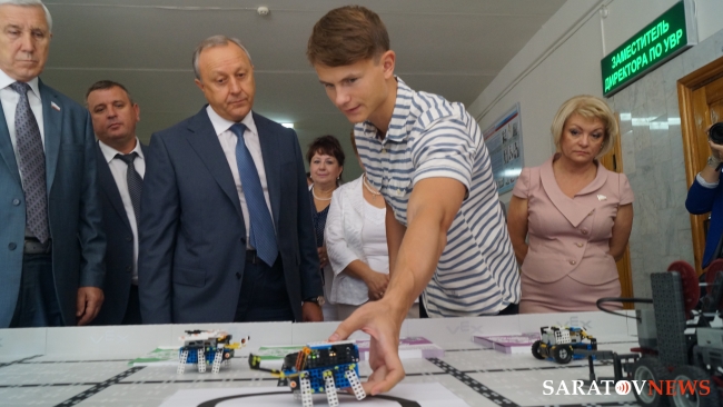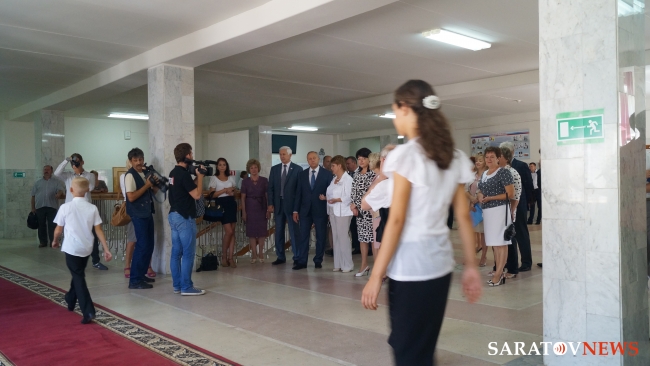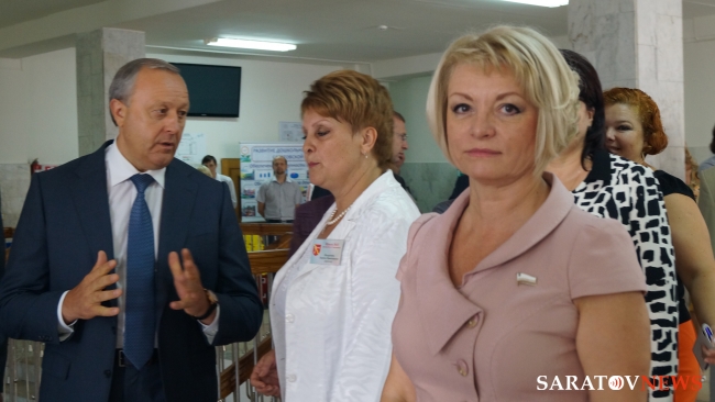 Главу региона сопровождали министр образования Саратовской области Марина Епифанова, уполномоченный по правам ребенка в Саратовской области Юлия Ерофеева, руководитель Саратовской областной думы Владимир Капкаев, ГФИ Марина Алешина, госдеп Людмила Бокова. Высокопоставленным лицам представили коллекцию школьной формы, электронный учебник.