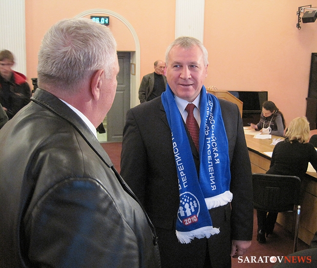 В колледже имени Гагарина уже прошел процедуру переписи Главный Федеральный инспектор по Саратовской области Павел Гришин. Николай Телятников поблагодарил его за участие и вручил шарф. Однако Гришину одного сувенира оказалось мало.