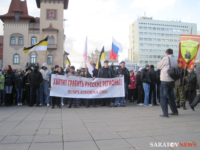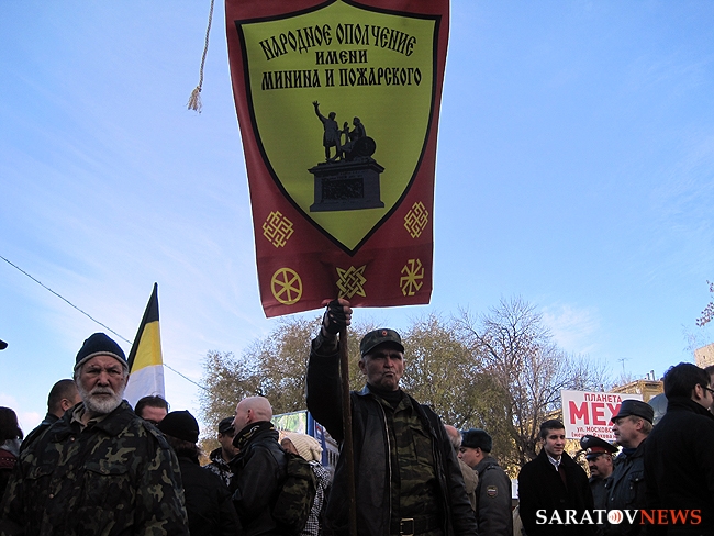 В этом году "Русский марш" собрал не в пример больше людей чем год назад, когда на акцию пришло 120-150 человек. Официальным организатором митинга-шествия, как и в прошлый раз, стал Павел Галактионов, сопредседатель коалиционного движения "Русский блок — Саратов". Помимо этого, на акцию пришли представители движения "Минина и Пожарского", казачества, "партии "Воля" (Самара), организации "Северное братство" (Балаково).