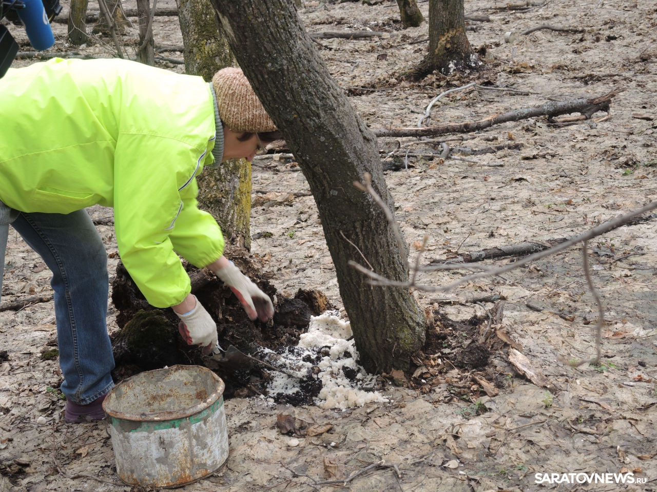 Саратовцы вывозят из леса на 8-й Дачной мешки с солью
