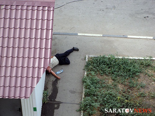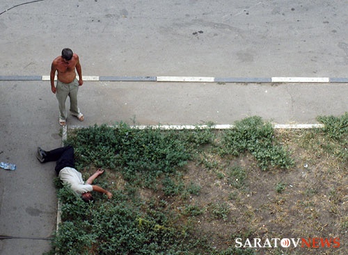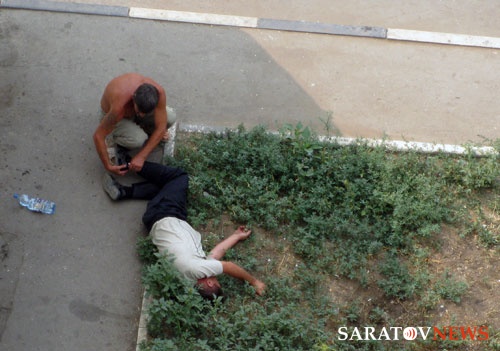 Происшествие случилось на глазах корреспондента Saratovnews, находившегося в одной из многоэтажек неподалеку. К сожалению, остановить и задержать преступника местные жители не успели. На фото хорошо видно, как с лежащего на газоне мужчины снимают ботинки.