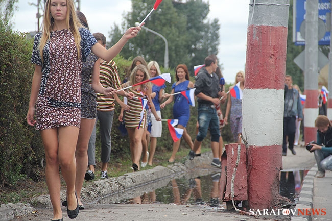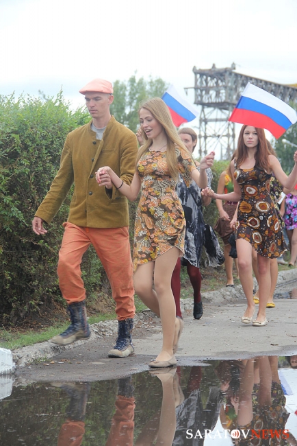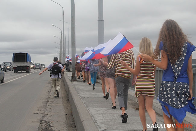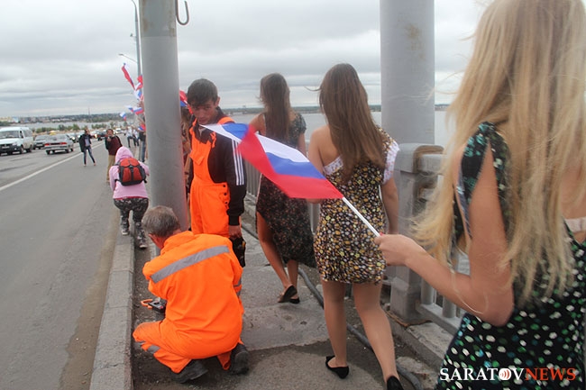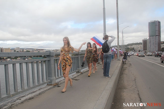 22 августа около 20 моделей прошли по мосту Саратов-Энгельс (его длина составляет 3 километра) в нарядах от саратовского модельера Андрея Голубцова. Показ был приурочен к Дню государственного флага - девушки и два парня размахивали маленькими символами страны на всем своем пути.