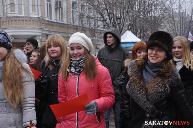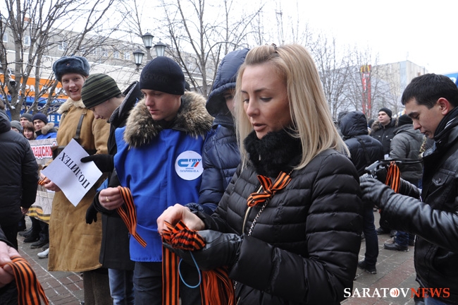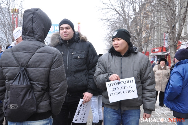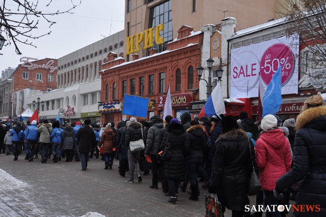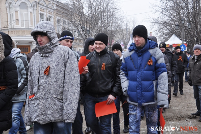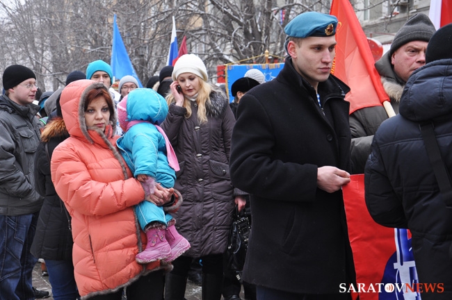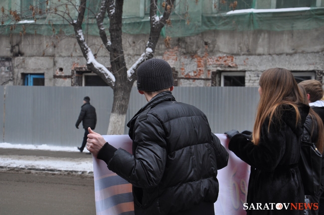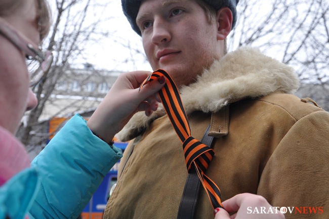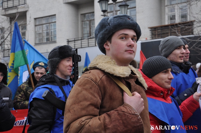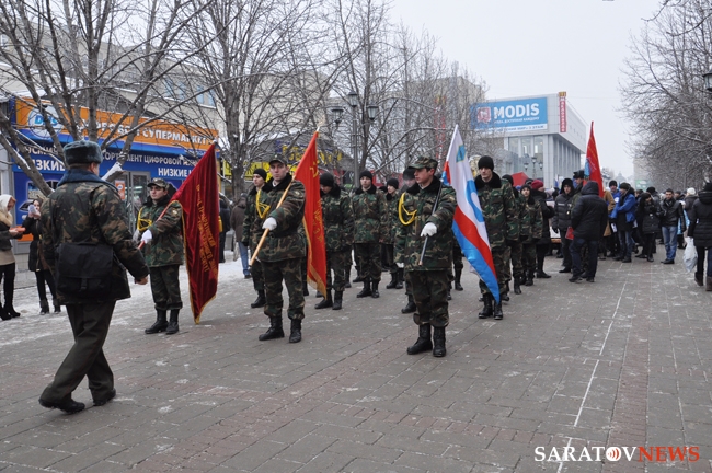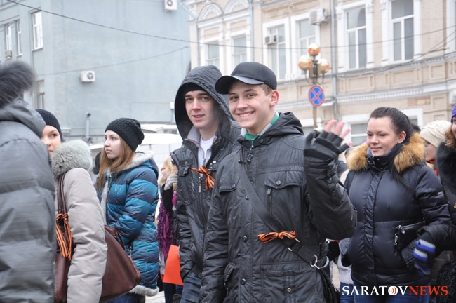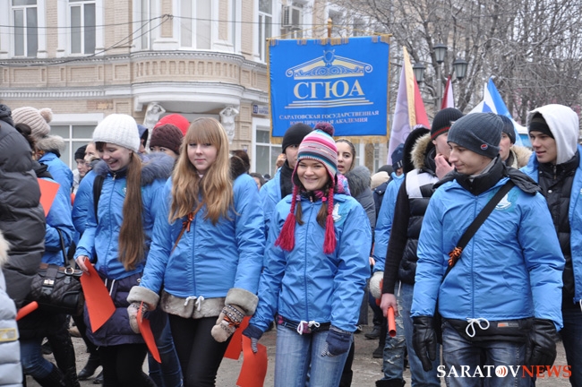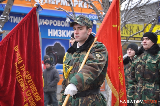 Сегодня в центре Саратова состоялось шествие, посвященное празднованию 70-летия со дня окончания Сталинградской битвы. Возглавили шествие военные и члены "Молодой гвардии" с транспарантом "Спасибо деду за победу. Молодежный благотворительный фонд "Я – патриот!" имени Кирилла Буркова". Расстановкой последних руководил депутат Саратовской городской думы Василий Артин. В молодежной колонне были замечены транспаранты и флаги Саратовской государственной юридической академии, Саратовского государственного технического университета и Приволжского института управления имени П.Столыпина.