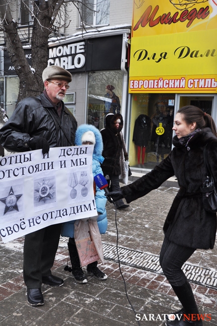При анонсировании мероприятия организаторы предлагали горожанам присоединяться к шествию с портретами своих родственников, участвовавших в сражениях под Сталинградом. Однако портреты оказались только на транспаранте СГТУ. В толпе был замечен мужчина, держащий в руках самодельный плакат со словами "Отцы и деды отстояли и мы свое не отдадим". Он рассказал, что его отец сражался под Сталинградом и был тяжело ранен, а также показал на своем плакате фотографию ордена, полученного за участие в сражении.