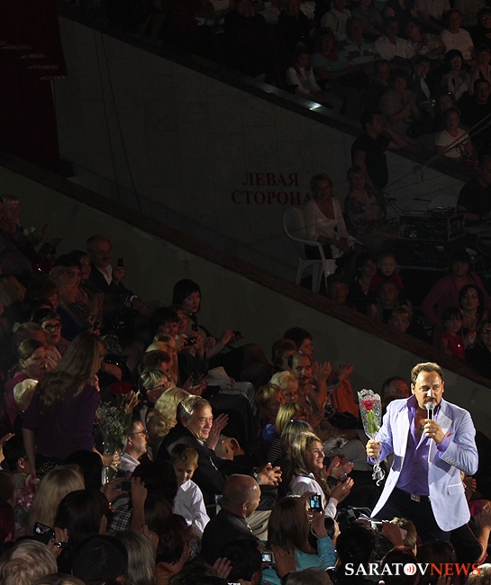 Вчера в саратовском цирке был полный аншлаг. Публика встречала своего кумира – Стаса Михайлова, приехавшего в город Саратов с новой программой "Живой". По тому, что в зале, как говорится, "яблоку негде было упасть", можно было судить, что в Саратове очень много поклонников этого певца, композитора и поэта.