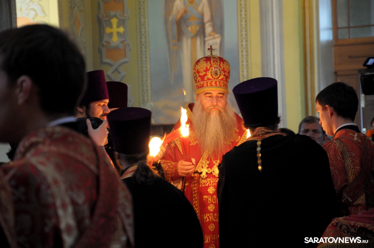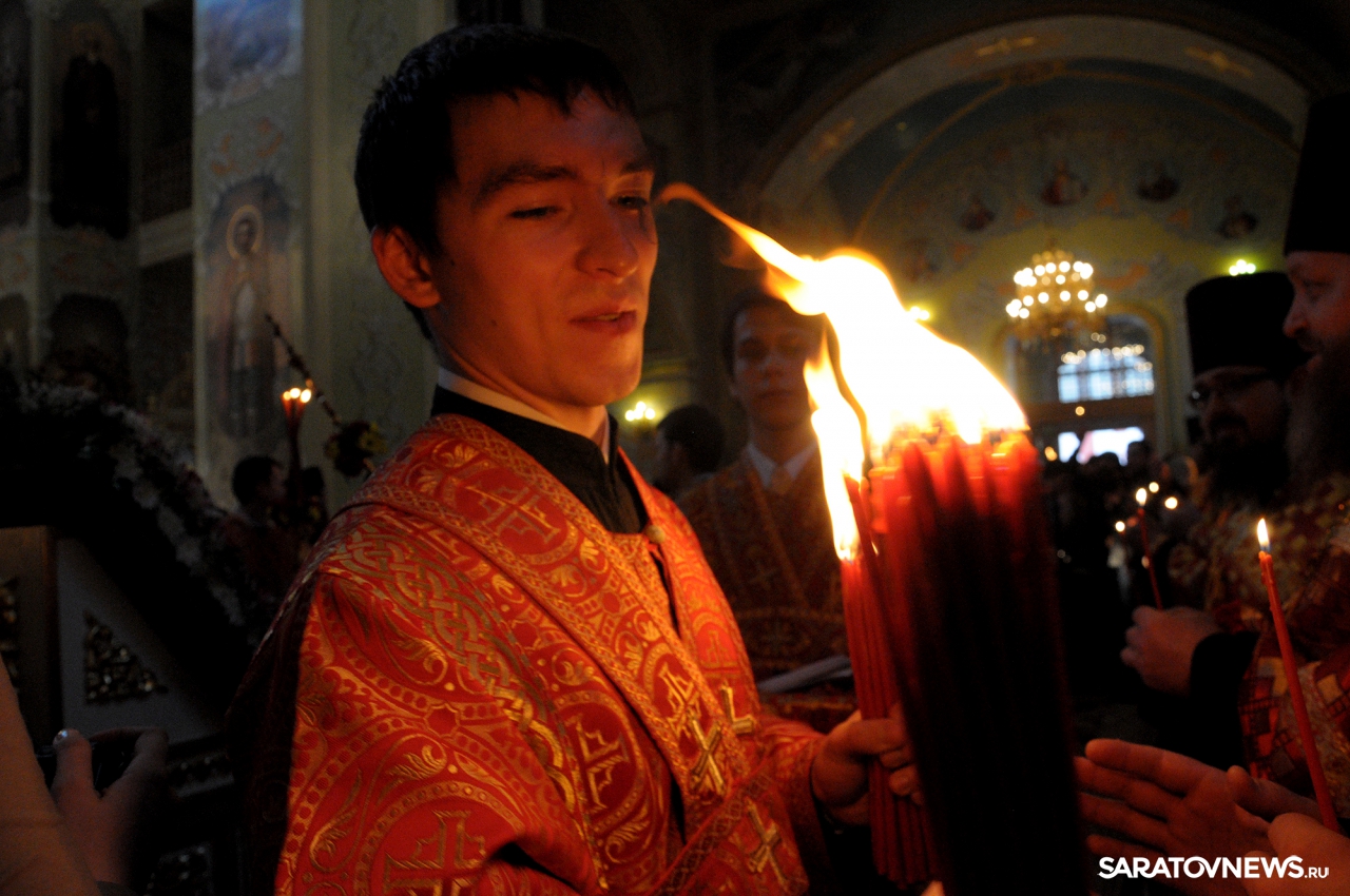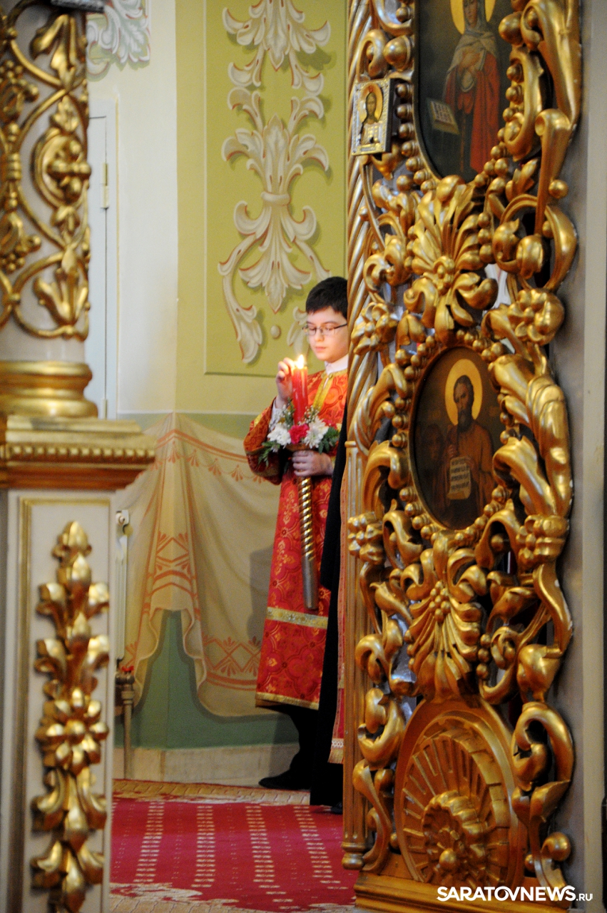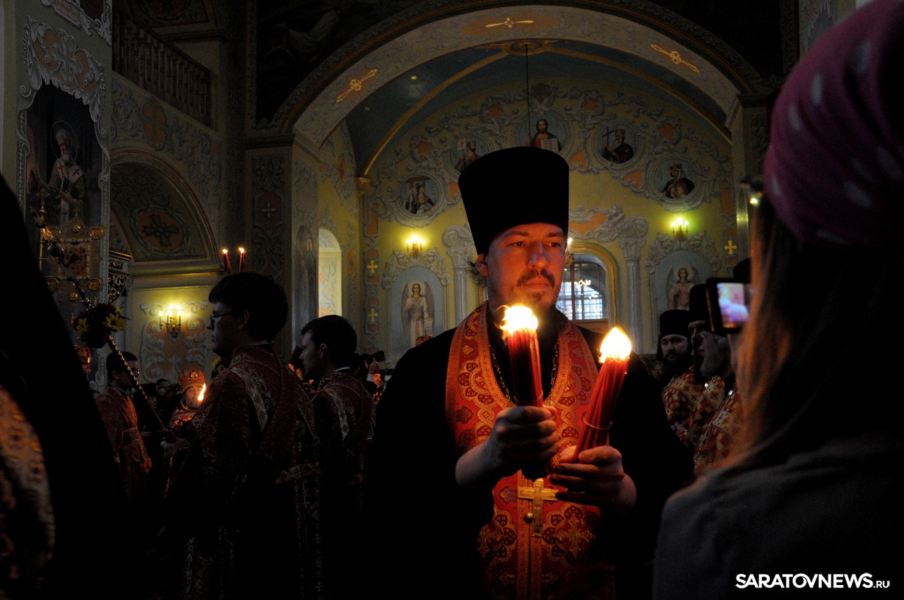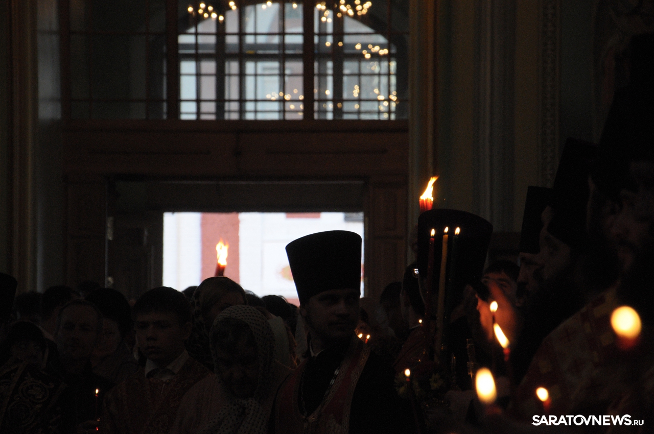 В Покровском храме Саратова прошла пасхальная литургия и встреча благодатного огня