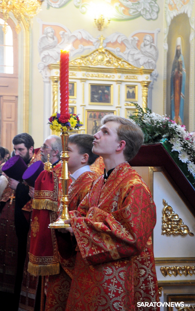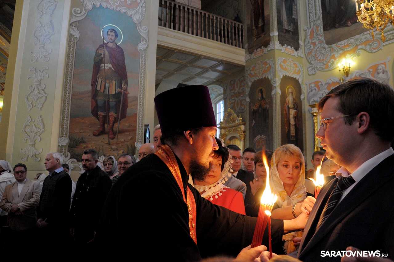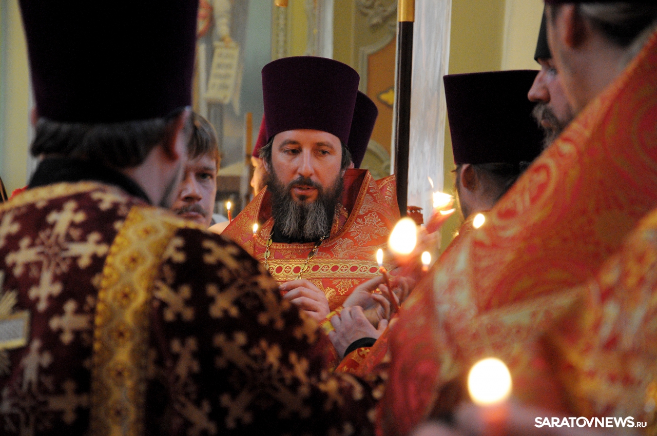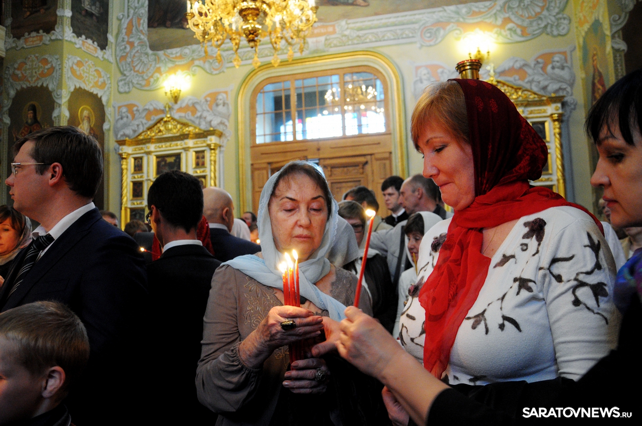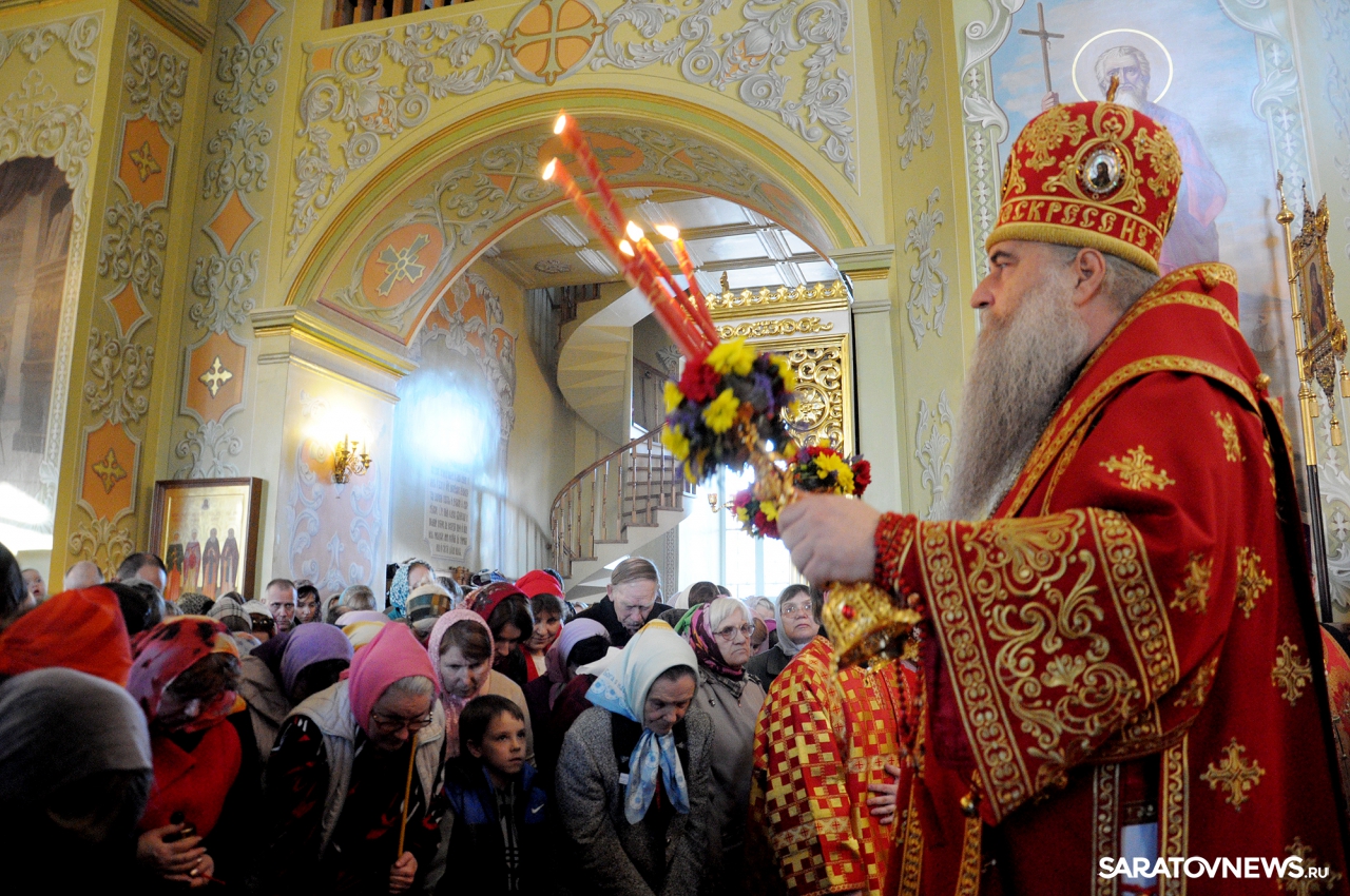 В Покровском храме Саратова прошла пасхальная литургия и встреча благодатного огня