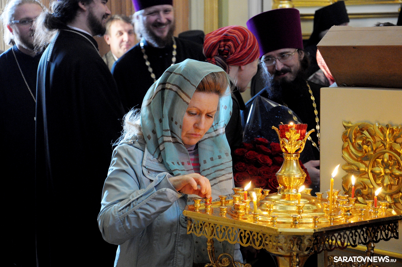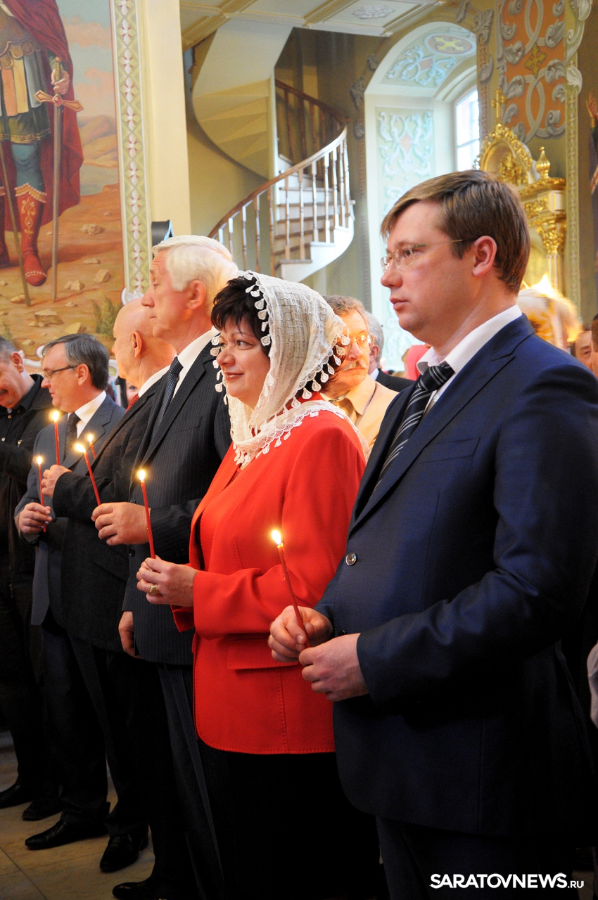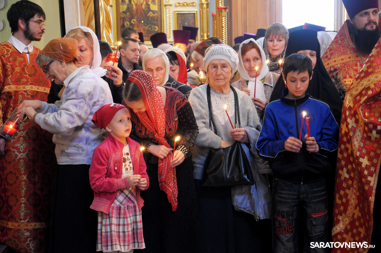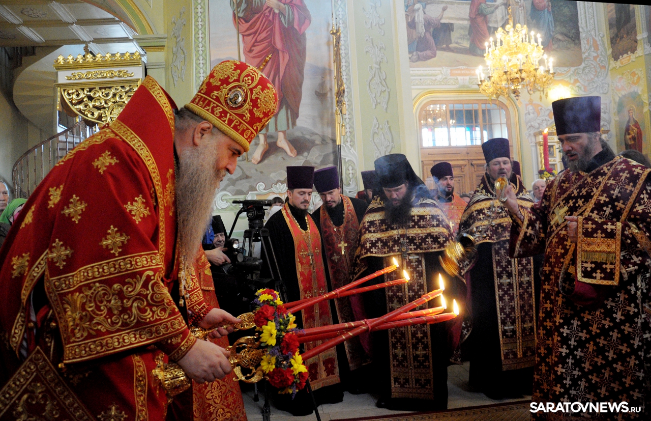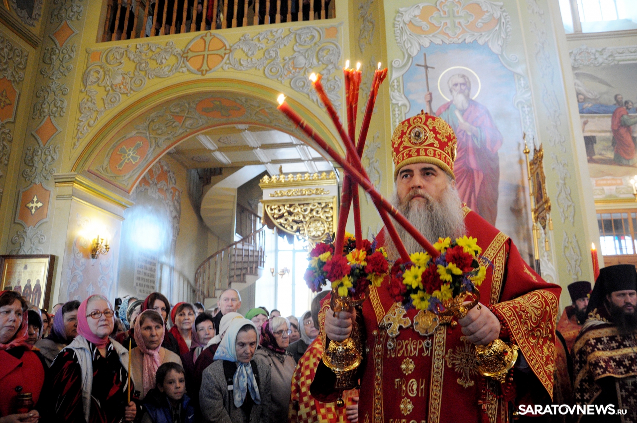В Покровском храме Саратова прошла пасхальная литургия и встреча благодатного огня