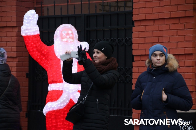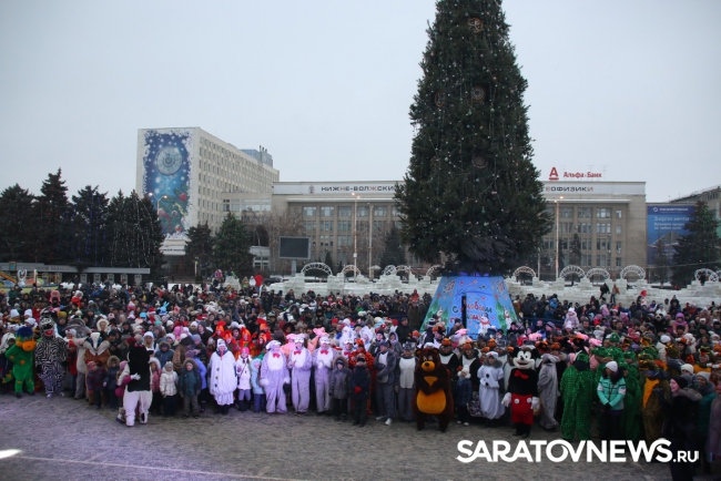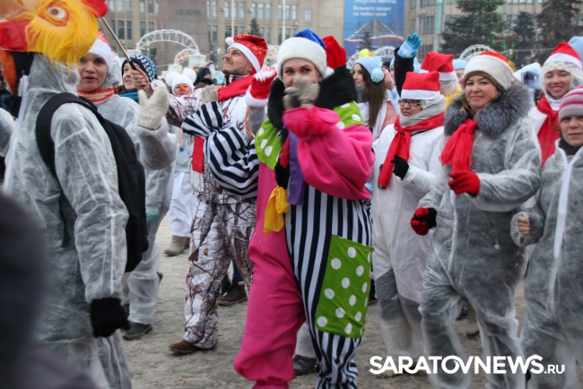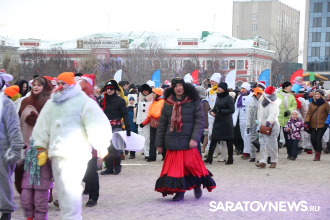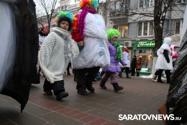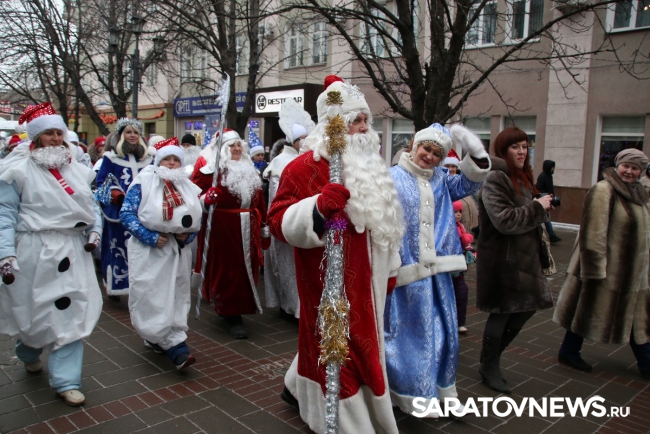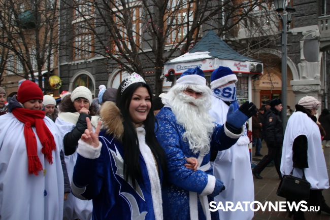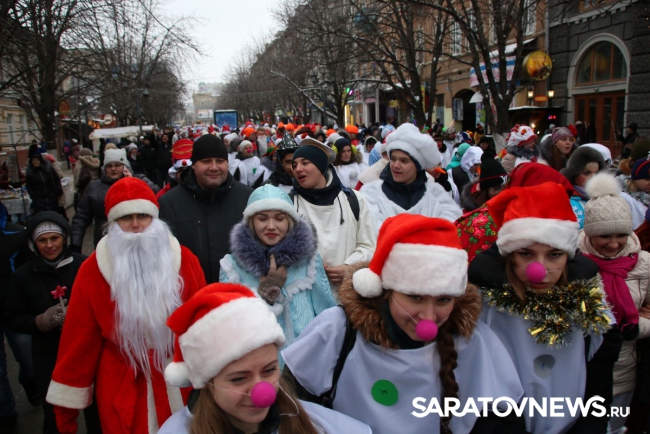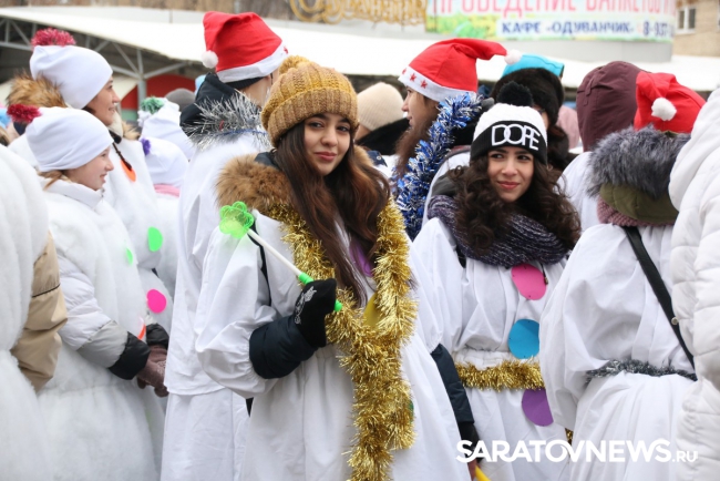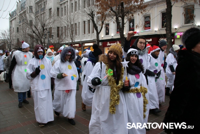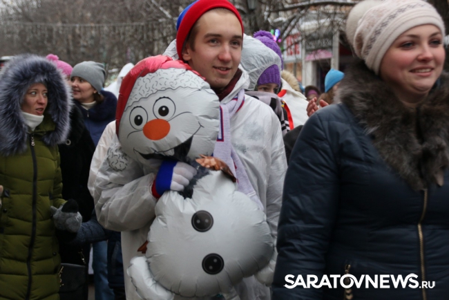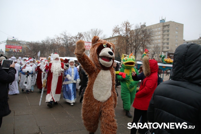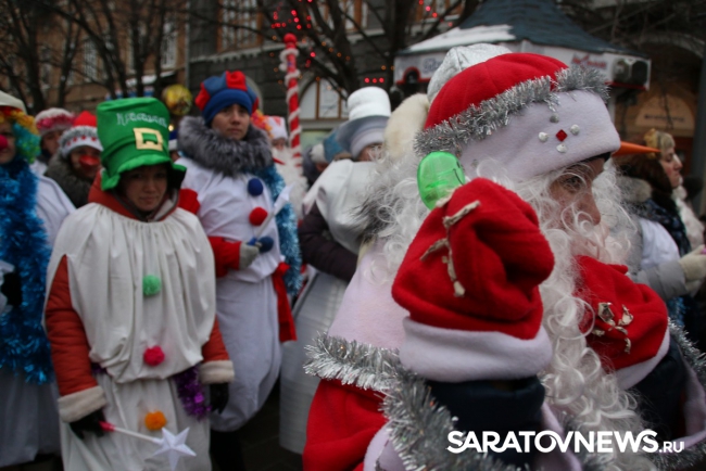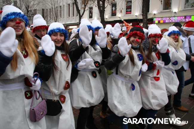 В Саратове прошло новогоднее шествие снеговиков и открытие елки