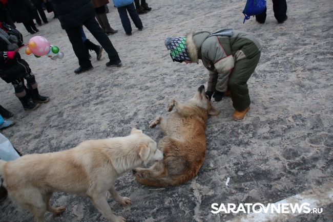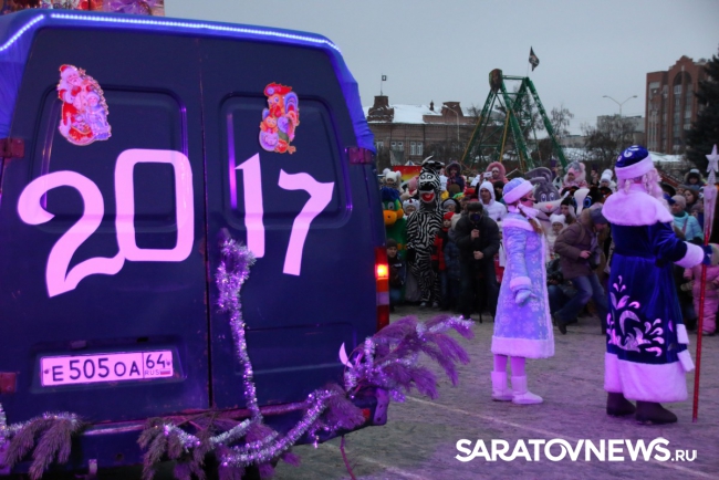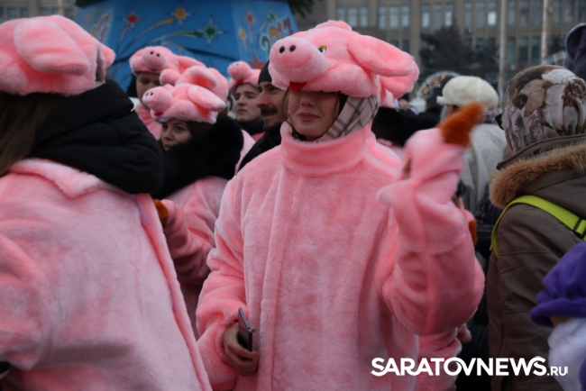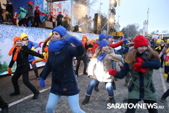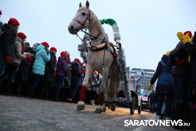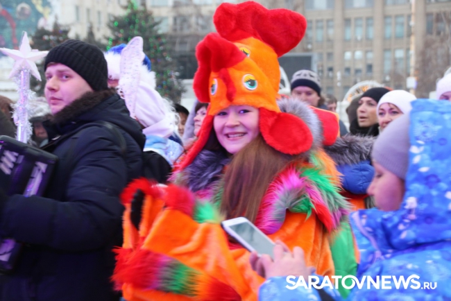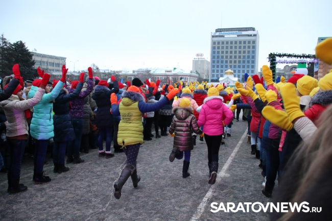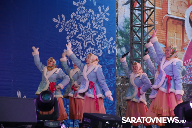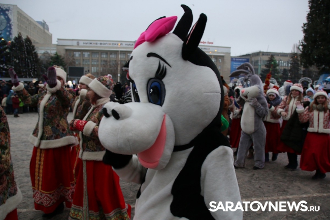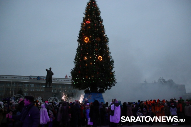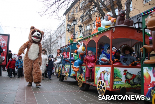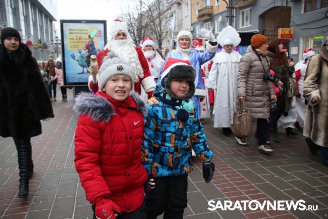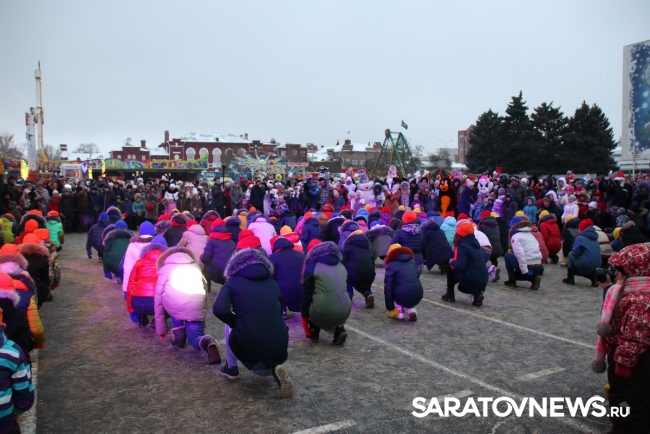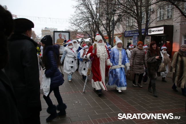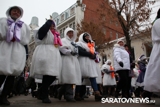 В Саратове прошло новогоднее шествие снеговиков и открытие елки