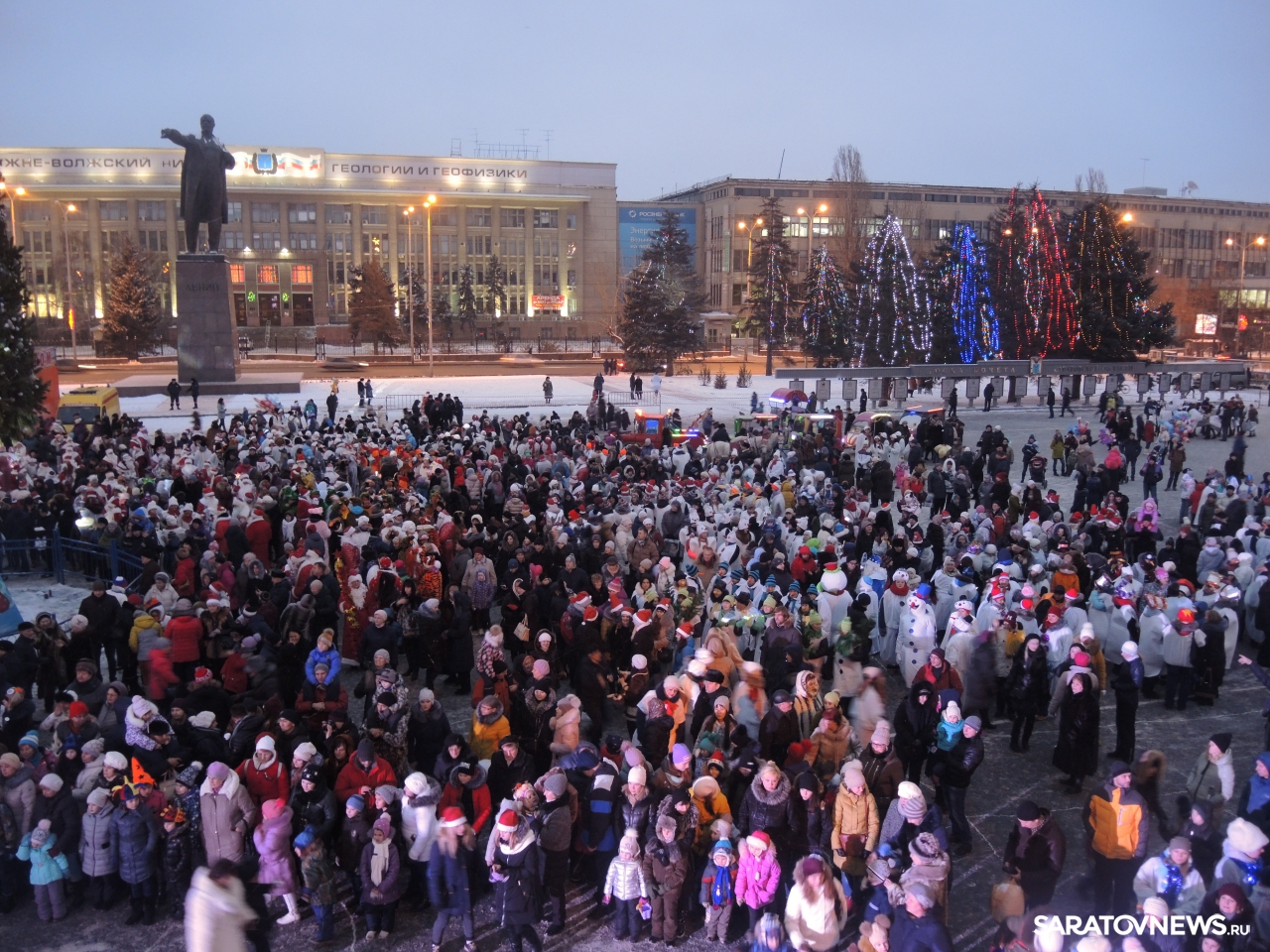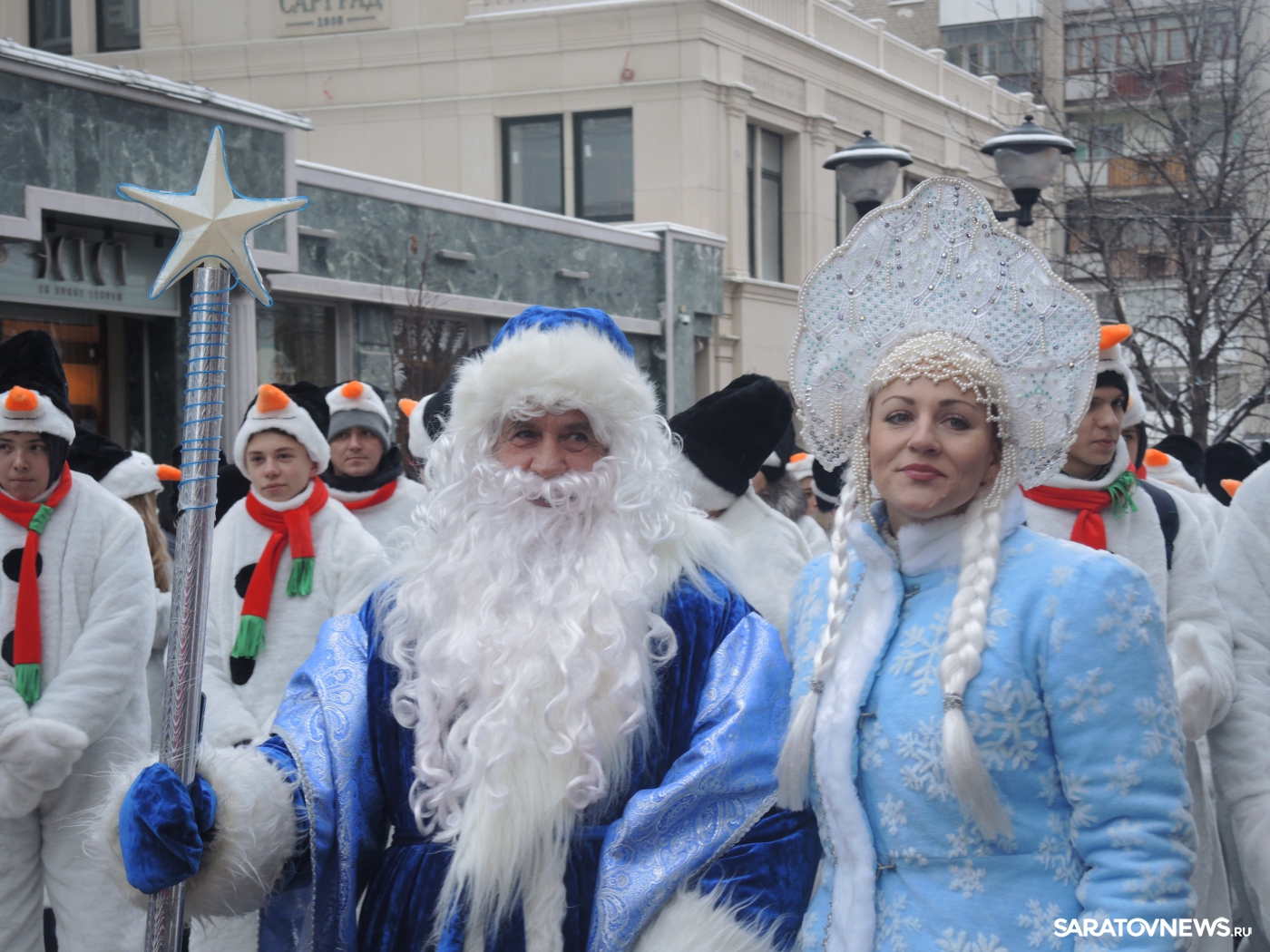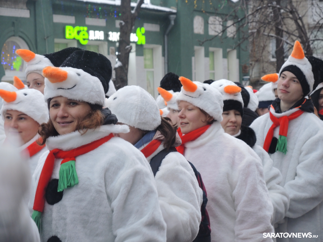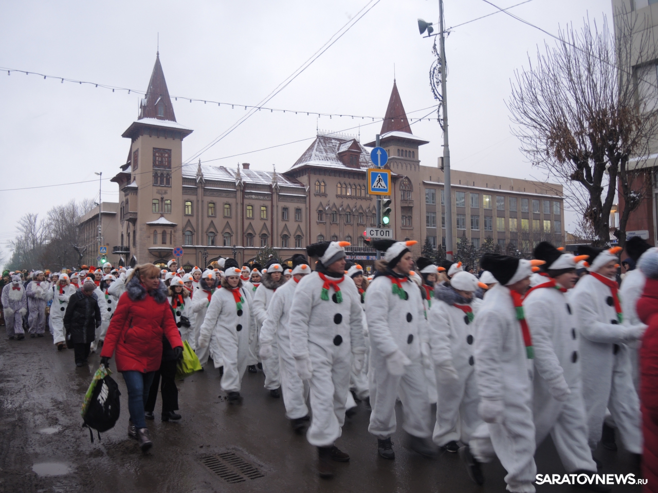 В Саратове провели парад снеговиков и зажгли огни на елке на Театральной площади