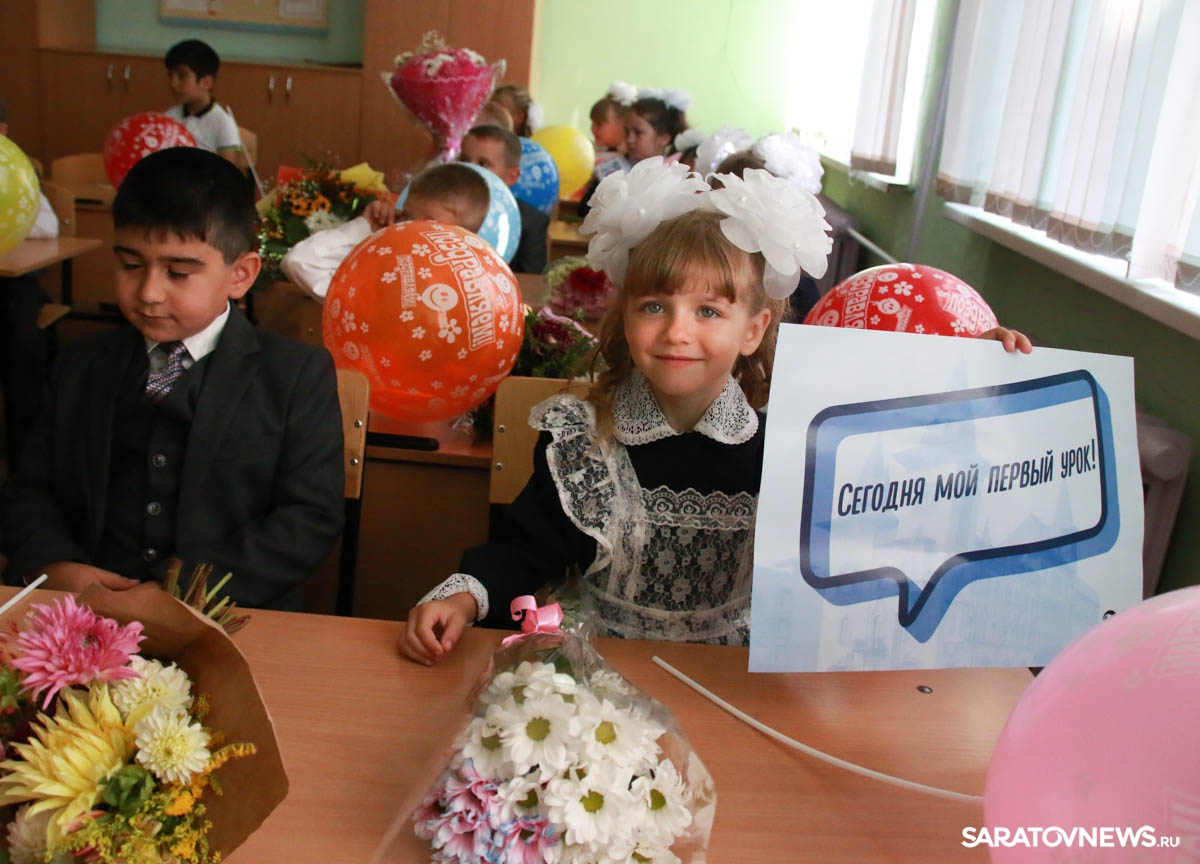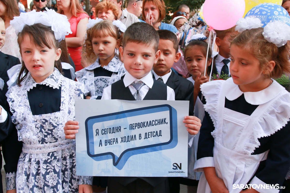 Первоклассники на линейке 1 сентября "На улицах Саратова"