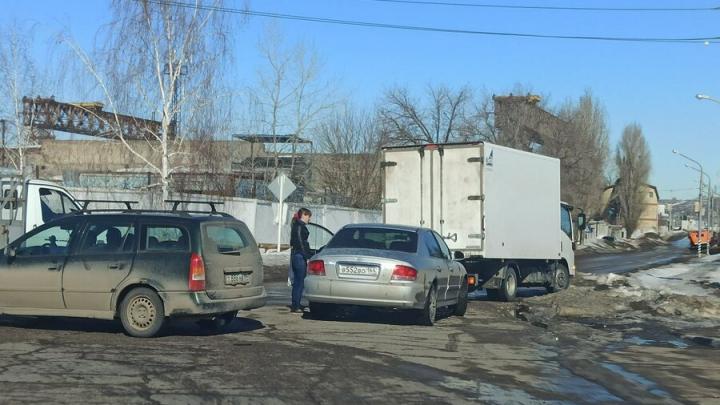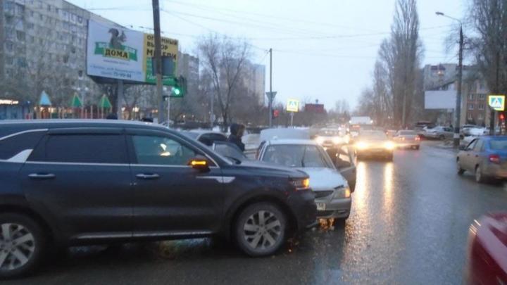 Три отечественных авто столкнулись на Лесозаводской в Энгельсе: пострадала женщина