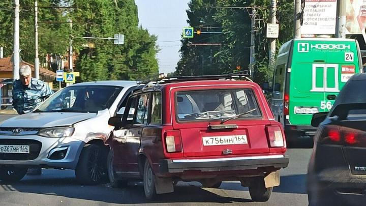 "12-я" врезалась в Hyundai на Большой Горной в Саратове