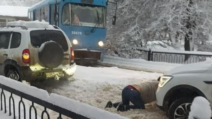 Застрявший на рельсах автомобиль у Детского парка прервал движение трамваев