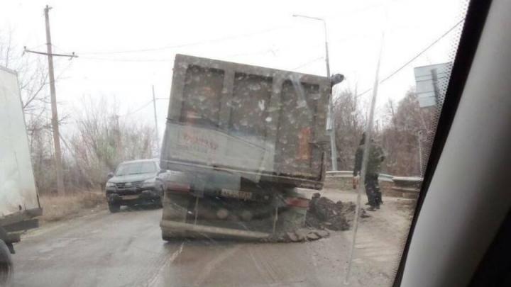 КамАЗ провалился в яму на Мельничной: дорога-ловушка в Саратове