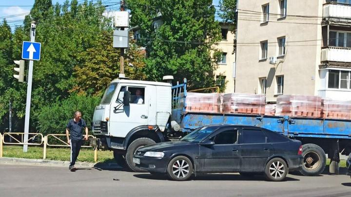 На проспекте Строителей в Саратове "КамАЗ" с кирпичом столкнулся с иномаркой