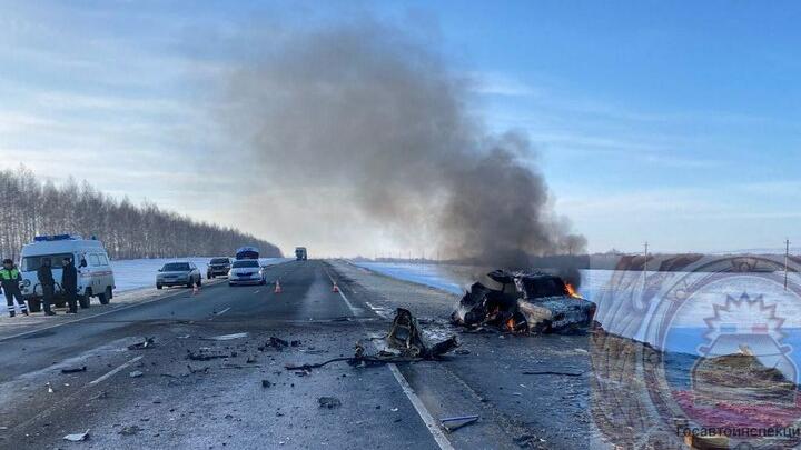 Mercedes перевернулся и загорелся в Ртищевском районе