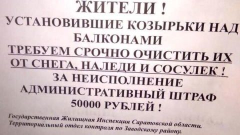 Неизвестные пугают саратовцев штрафом за сосульки на балконах