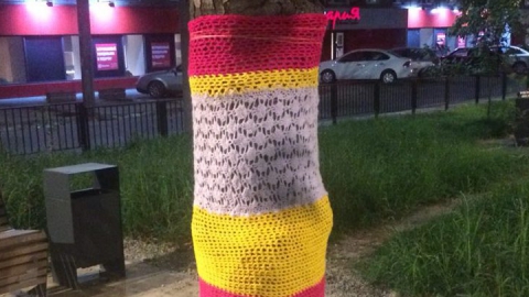 Горожане умилились одетыми в вязаные «носки» деревьями на Рахова