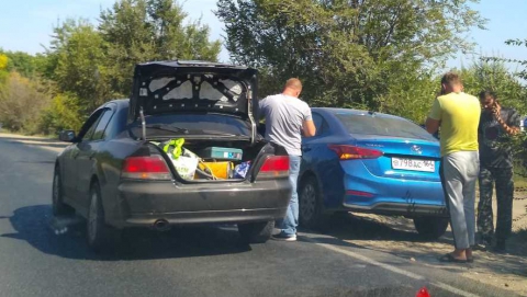 У железнодорожного переезда не разъехались "Хундай" и "Ниссан"