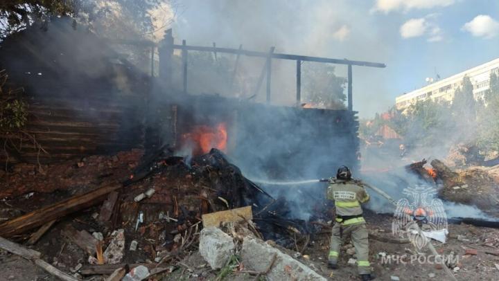 У Славянской площади в Саратове горят сараи