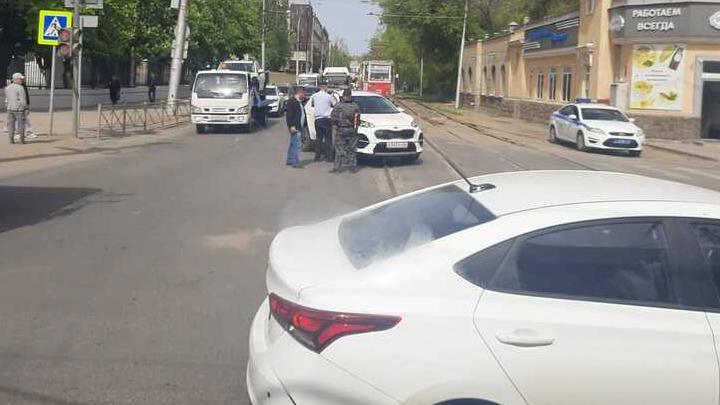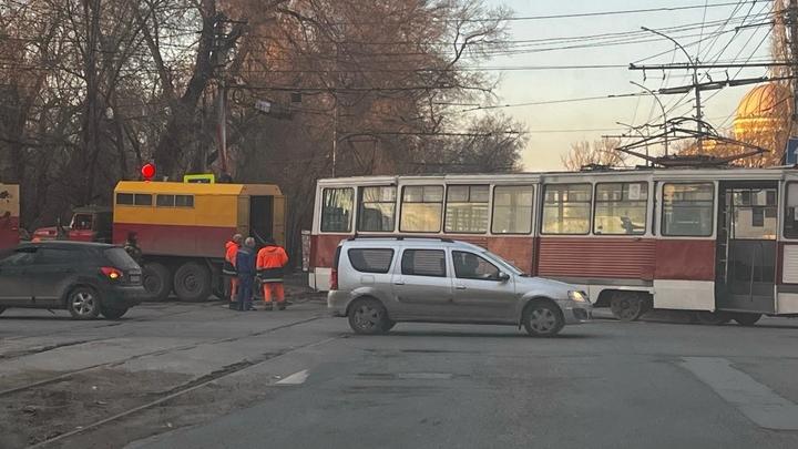В Саратове автомобиль заехал на трамвайные пути и заблокировал движение двух маршрутов