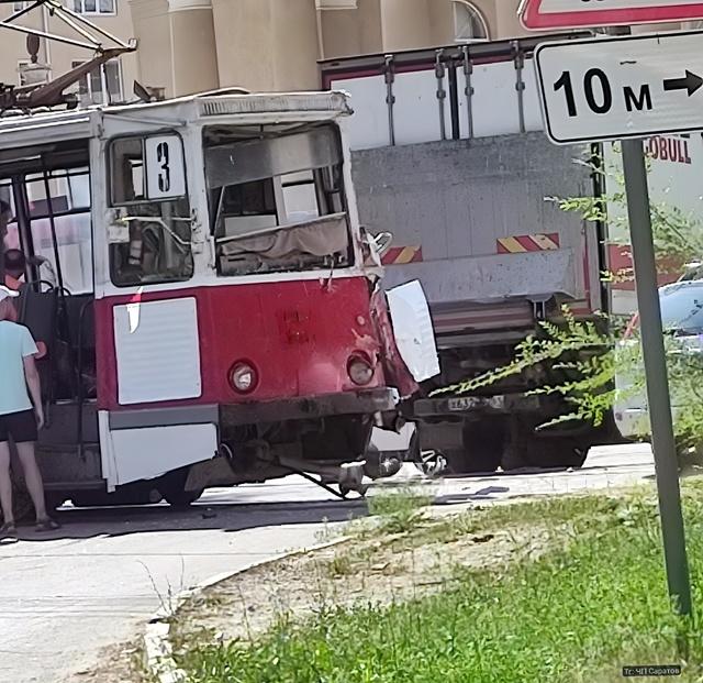 В Саратове на 5-й Дачной столкнулись трамвай и грузовик